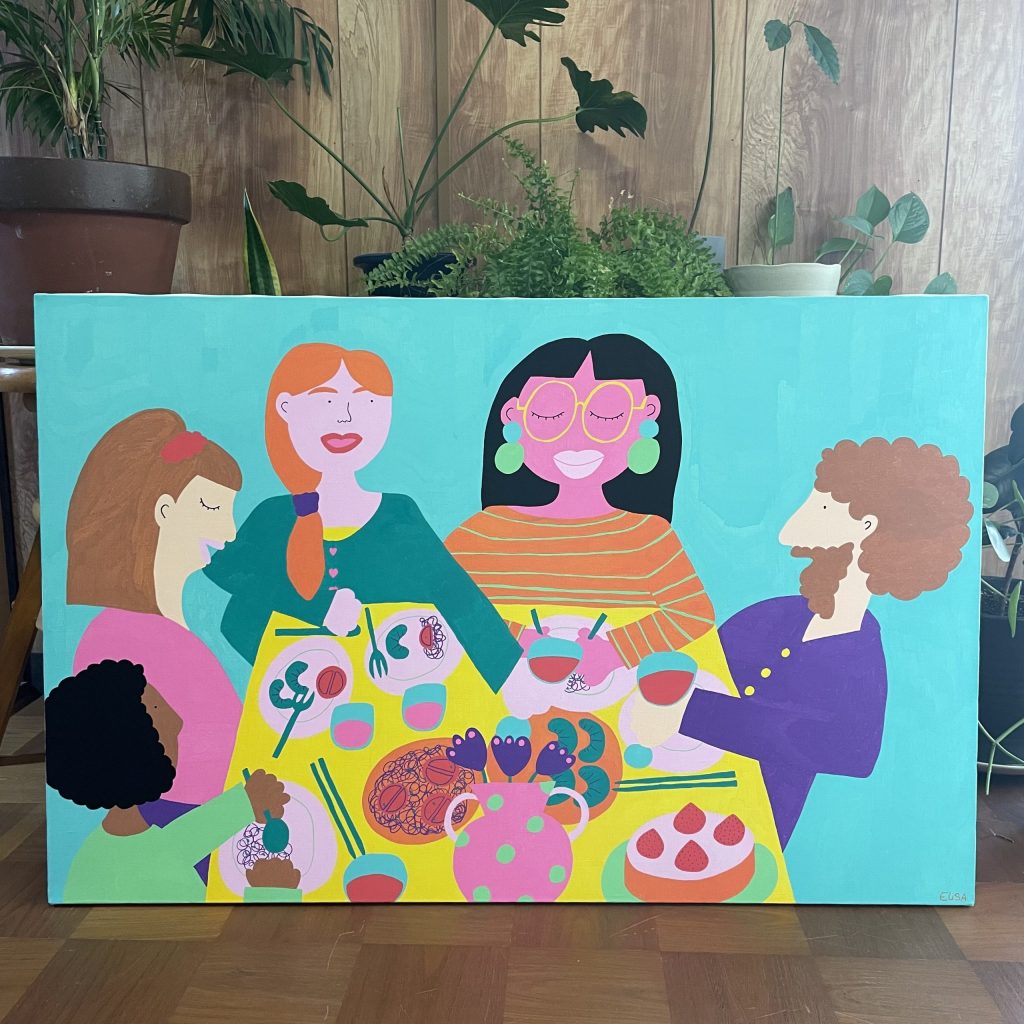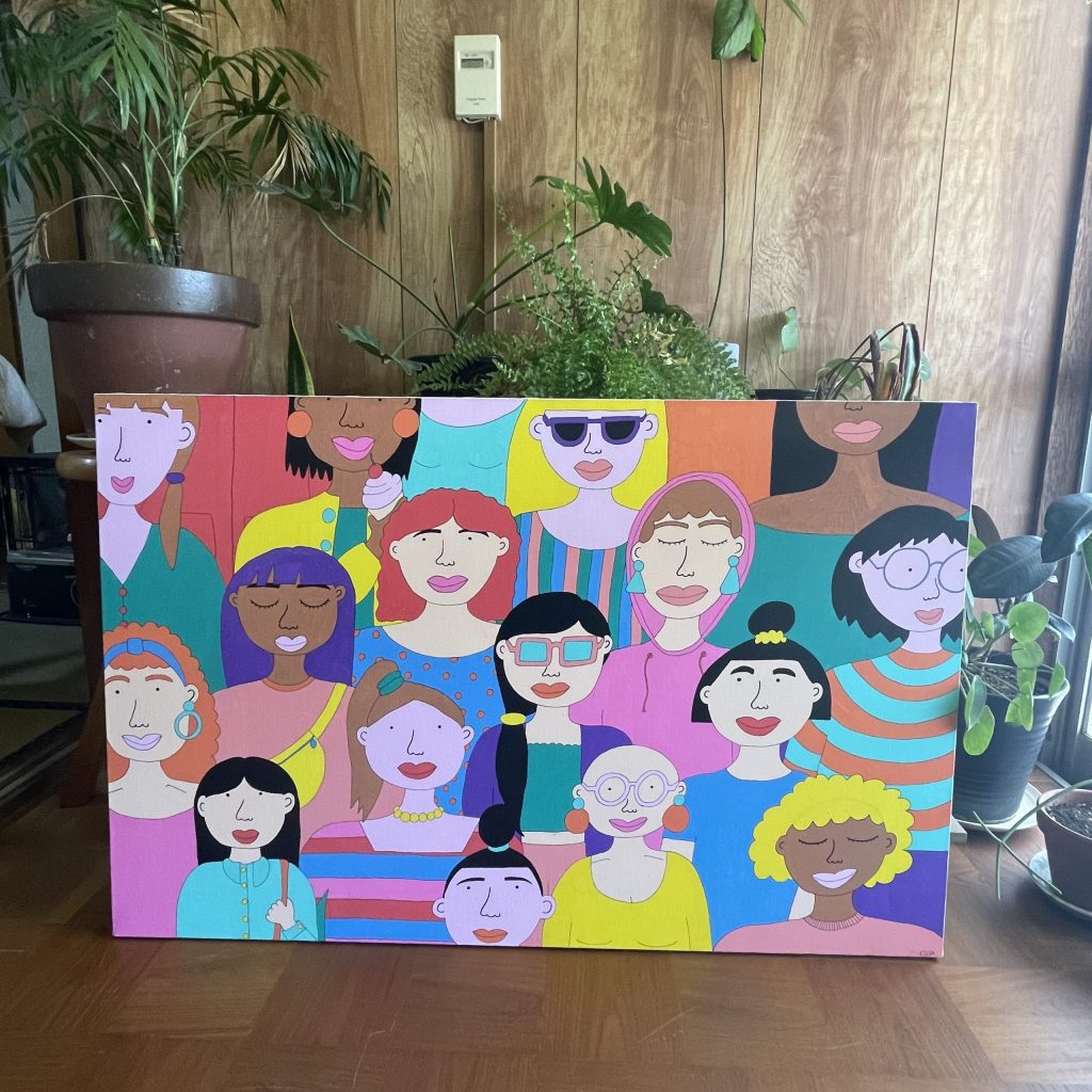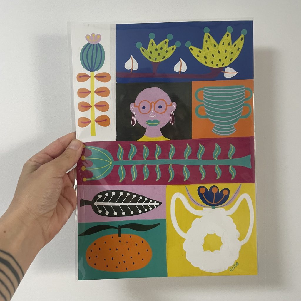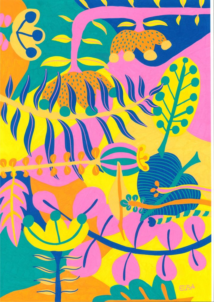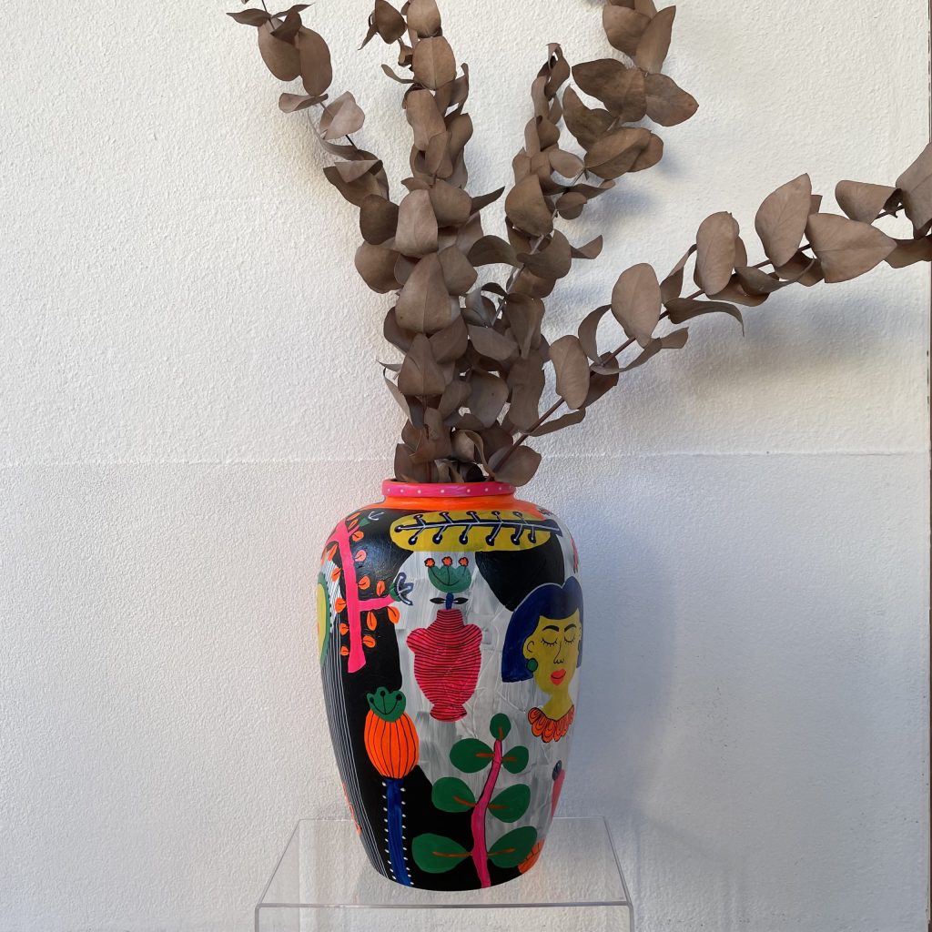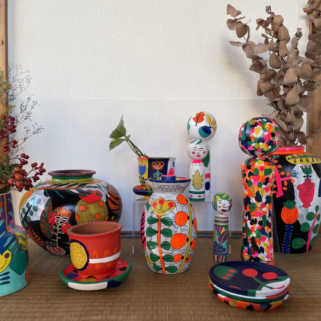 花や植物、女性、そして抽象的なフォルムから着想を得た作品が特徴で、柔らかな色彩感覚と独自の構成力で作品を制作している。