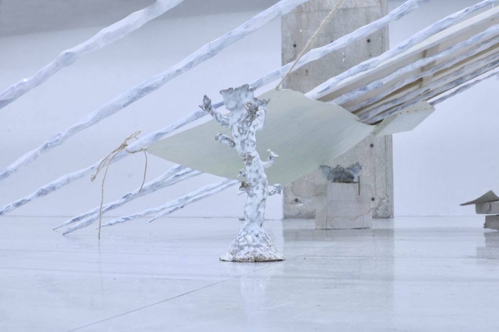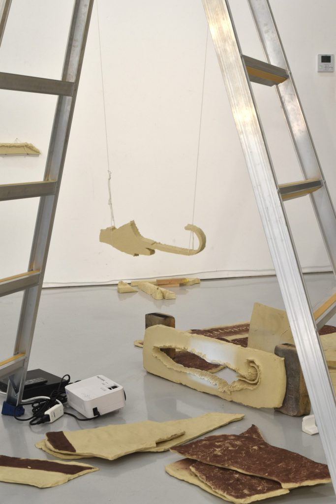 身のまわりのことから遠くのことについて、絵画・立体などで表現に取り組む。” 最近の制作は、実家にいたころから現在までの風景や記憶をもとにしています。空間の中にかたちを起こしてみたり、石を埋めたり、絵を描いたりするうちに、そこに細かな層が見えてきて、そのあいだにできる隙間のかたちを探っています。