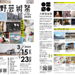 - 大野芸術祭 OHNO ART BREW 2025 開催決定のお知らせ昨年に引き続き、大野芸術祭を開催いたします。今年は 3月15日(土)から23日(日) までの9日間、大野町全体がアートで彩られます。 主な会場は「大野海岸」 …